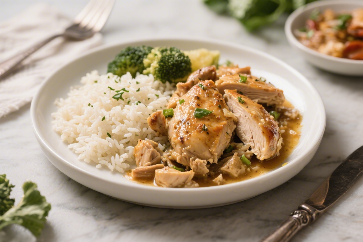- Serve: Spoon the rice onto plates and top with chicken. Add a quick side salad or steamed greens if you like.
